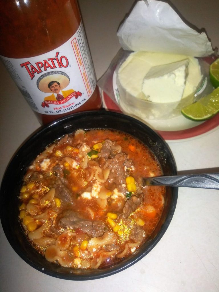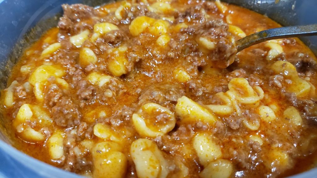 Directions: Brown the ground beef, add chopped onions and minced garlic, seasoning to your taste Once meat is done, drain, add potatoes (peeled & cut in small cubes), add pasta, add stock and about 2-3 cups water to cover; also add Knorr about 1 tbsp. & tomato sauce..I add a bit more of the seasonings […]