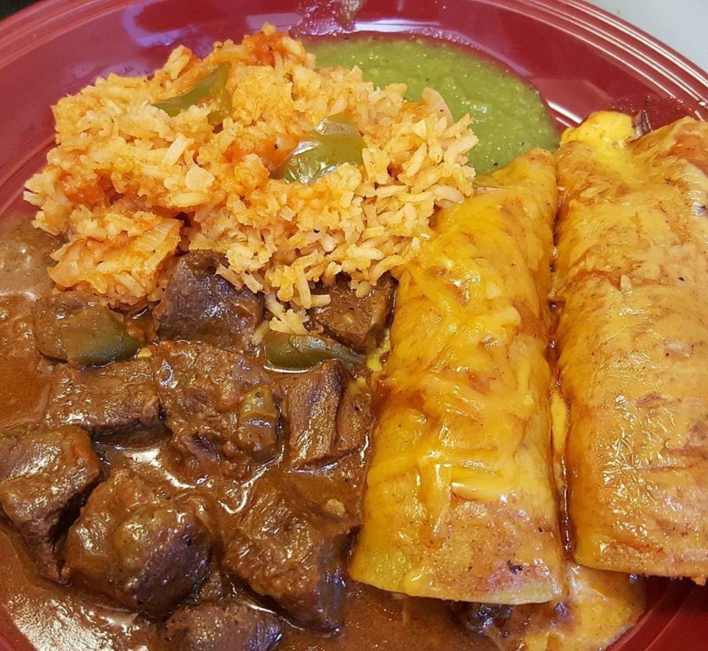 Carne Guisada, Beef Enchiladas and Spanish Rice