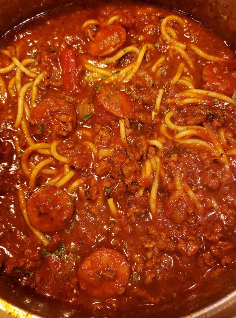 DIRECTIONS In a large skillet add ground beef and chopped onion. Cook on medium-high heat until brown. Drain excess grease. Add tomato sauce, tomato paste, Italian seasoning, salt, pepper, dried basil, garlic powder, red pepper flakes, minced garlic, Worcestershire sauce, sugar, and beef broth. Mix ingredients to combine and bring to a boil. Reduce heat […]