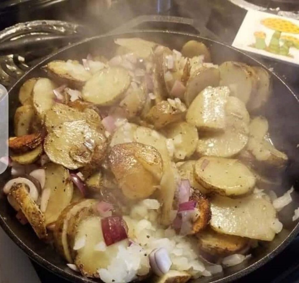 INSTRUCTIONS Peel and thinly slice the potatoes about ⅛”-¼” thick. Heat the oil in a seasoned fry pan or non-stick pan. Carefully add the potatoes into the hot oil. Keep uncovered. Fry potatoes until crispy about 20-25 minutes. Do not rapidly stir potatoes, but carefully flip them, try to keep them intact, and not mushy. […]