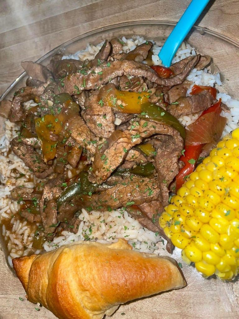 Ingredients: 1.5 pounds Beef top sirloin steak, cut into thin 2 inch long slices 1/2 teaspoon Kosher salt 1/4 teaspoon Black Pepper 1/2 cup Soy sauce 1/3 cup Water 4 tablespoons Cornstarch 1 tablespoon Rice wine vinegar 2 tablespoons Packed brown sugar 2 teaspoons Black pepper 2 teaspoons Ground ginger 4 Tablespoons Vegetable oil, divided 1 Onion, thinly sliced 2 cloves Garlic, finely minced 2 Green bell peppers, thinly sliced 1 Red bell pepper, thinly sliced TURN TO THE NEXT PAGE TO READ INSTRUCTIONS
