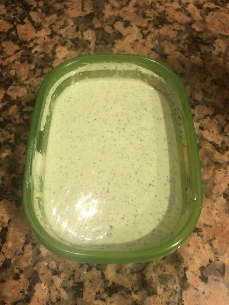 Directions: Combine jalapenos, cilantro, sour cream, garlic, lime juice and salt in the bowl of a food processor. With the motor running, add olive oil and vinegar in a slow stream until emulsified. Enjoy !!